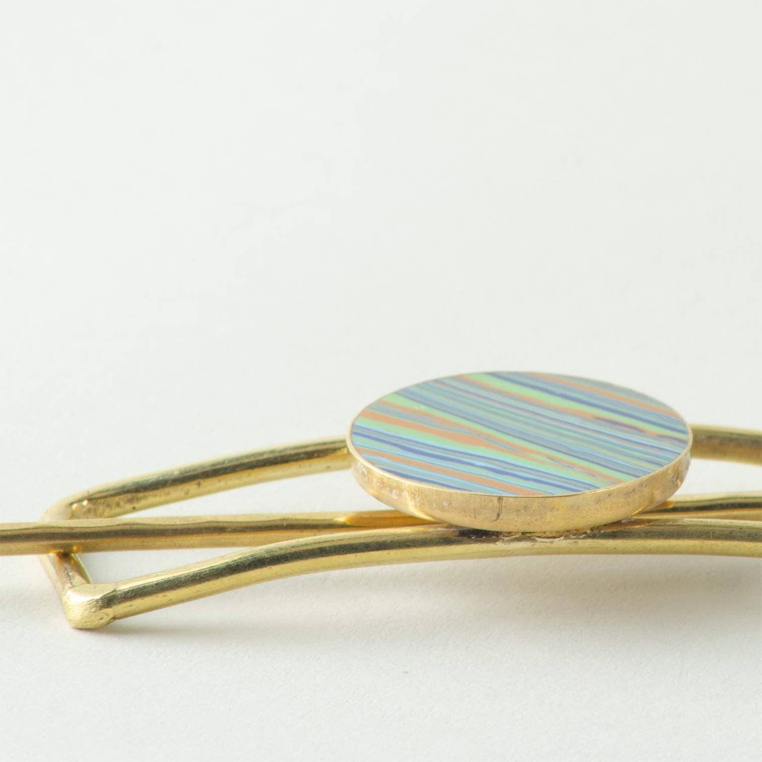 Our sunny Ria Collection features a rich pallet of color and modern, handcrafted gold finish designs. This unique, hand hammered, rectangular hair hoop features a marbled, reconstituted semi-precious stone charm and matching pin in gold finish brass.
