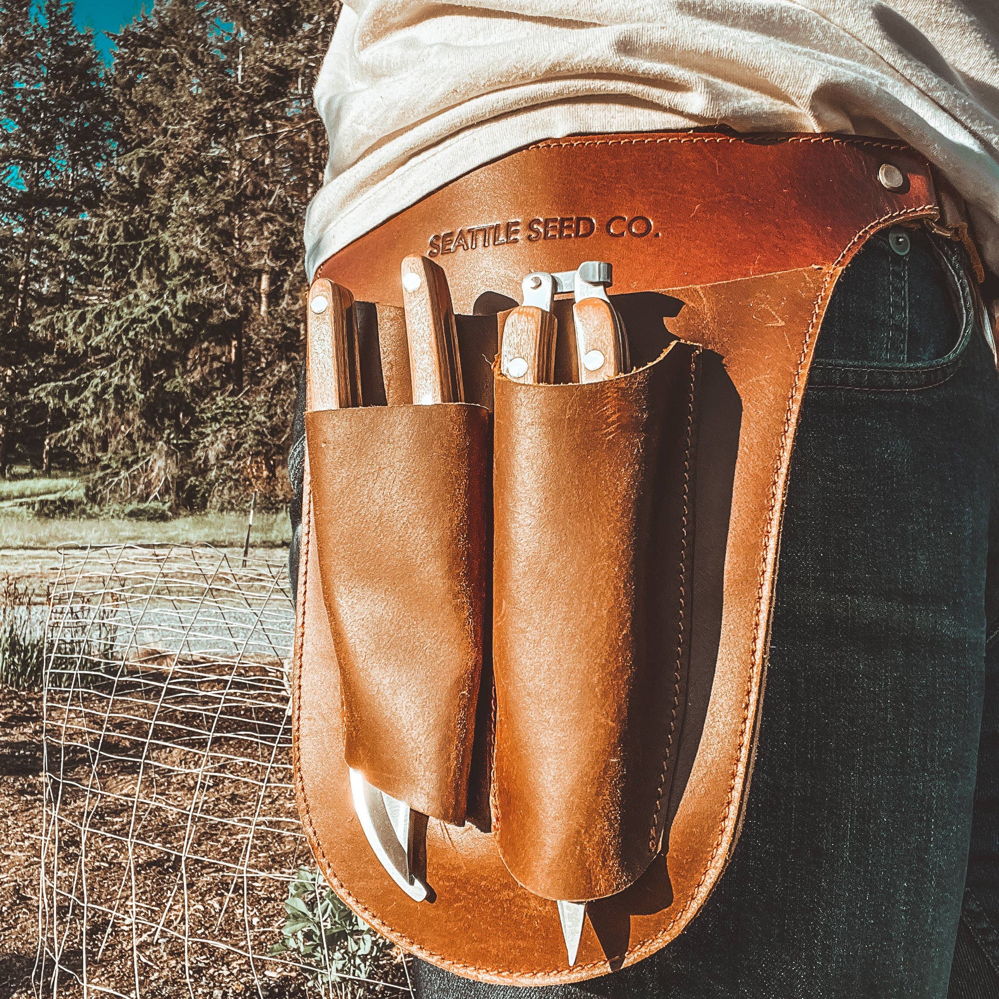 Elevate your gardening experience with the Harvest Essentials Gardener's Tool Belt. Crafted from genuine leather, this slim, minimalist design ensures comfort and style. Perfect for cutting flowers, deadheading, light pruning, vegetable harvesting, seed planting, row marking, and even photography. The belt features two pockets for tools like Bypass Pruners and Straight Shears, plus a large open pocket for seed packets, gloves, plant labels, or your phone.