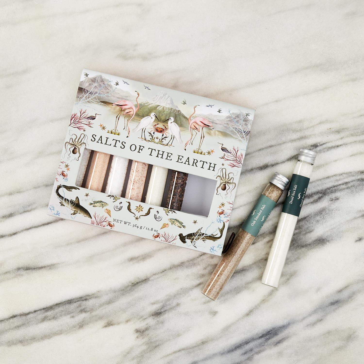 Elevate your culinary creations with the Salts of the Earth collection - a meticulously curated selection of 8 unique salts sourced from diverse corners of the globe, each boasting its own distinct texture, color, flavor and mineral content. Enhance the depth of your dishes with the delicate crunch of Kalahari Desert Salt or add a touch of the unusual with India's black salt, Kala Namak. Transport your taste buds to majestic mountains with the rosy hue of Himalayan Pink Salt or indulge in the subtle sweetness of Bolivian Rose Salt. Experience the rejuvenating properties of Dead Sea Salt or infuse your dishes with the rich, smoky essence of Oak Smoked Salt. For a delicate finish, sprinkle Cyprus Flake Salt over your favorite dishes, or elevate your everyday creations with the exquisite Atlantic Fleur de Sel.