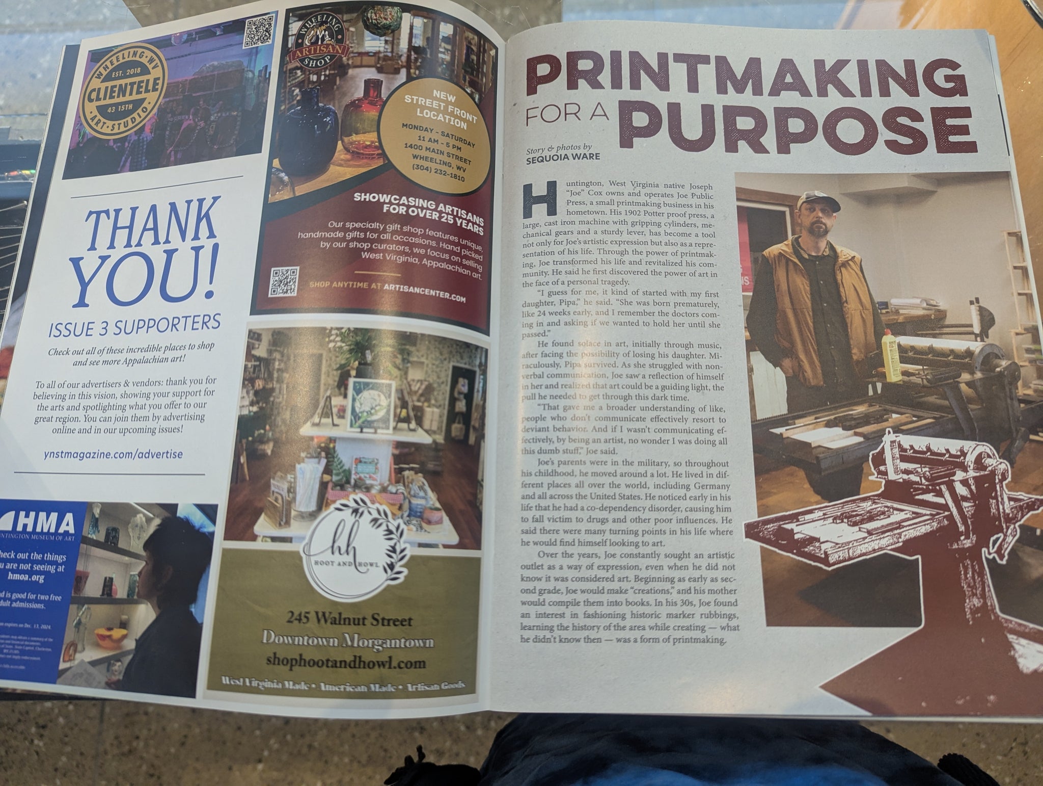 YNST (You're Not Seeing Things) Magazine is a print & digital media company dedicated to amplifying the unseen creative voices of Appalachia's art & culture.